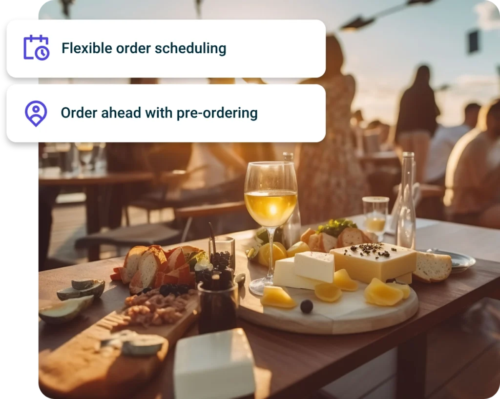 Give guests the freedom to order how they want—schedule pickup, order ahead, or tap “I’m here” on arrival.