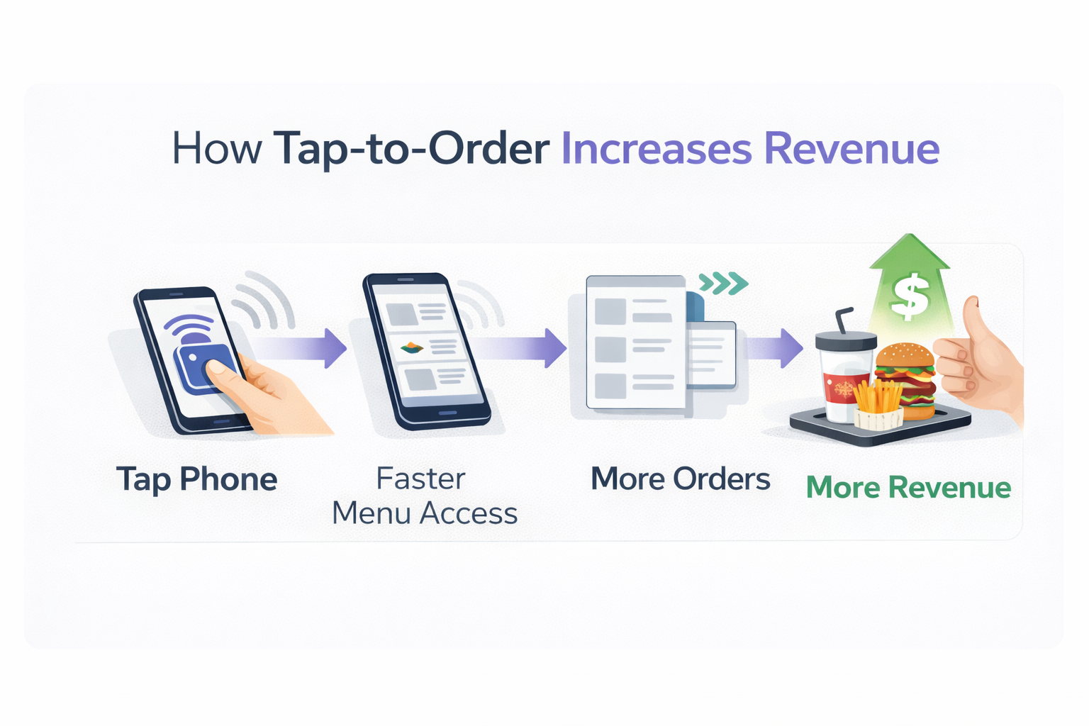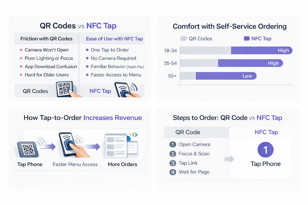 Tap-to-order removes those barriers. One physical action replaces several digital steps. There’s nothing to line up, nothing to focus, and nothing to interpret.